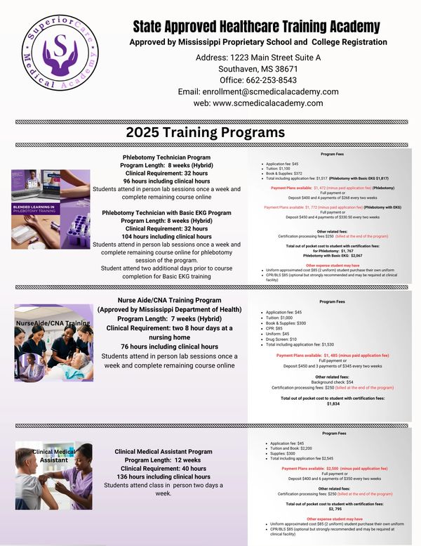 At SuperiorCare Medical Academy, our mission is to equip students with the knowledge, confidence, and clinical experience to begin successful and meaningful healthcare careers.
