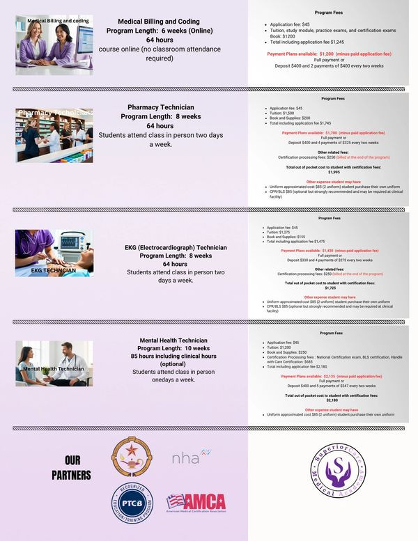 At SuperiorCare Medical Academy, we understand the importance of investing in your future. That's why we offer a range of vocational and technical programs that provide students with the skills and knowledge they need to succeed in their chosen career. Our experienced instructors use a hands-on approach to education, ensuring that our graduates are ready to hit the ground running. With our flexible scheduling options and financial aid programs, we make it easy for students to achieve their goals.