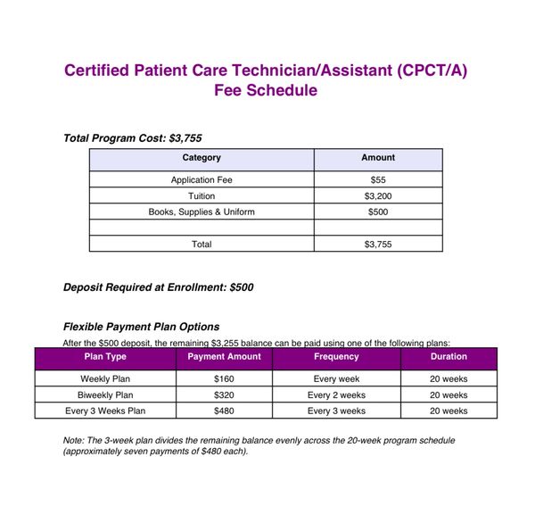 This 20-week program provides a combination of classroom instruction, laboratory training, and real-world clinical experience. Students will be prepared to work as versatile healthcare professionals in hospitals, clinics, and outpatient settings while earning dual certification as both a Certified Patient Care Technician/Assistant (CPCT/A) and a Certified Clinical Medical Assistant (CCMA).