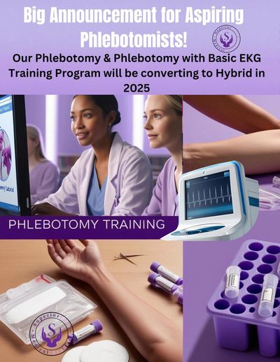 🌟 Comprehensive Training: Program length 8 weeks 104 plus hours of training. Prepare for an exciting career in phlebotomy and/ or Phlebotomy with Basic EKG.